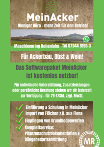WEITERE NEWS „MeinAcker“ – Das MeinAcker-Paket enthält ein umfassendes Dokumentenmanagementsystem, eine Schlagkartei und vieles mehr. Nutzen Sie als MR Mitglied die kostenlose Registrierung. Klicken Sie